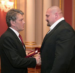 ![]() «Ще не вмерла Україна!». Василий принимает награду из рук Президента Фото УНИАН |