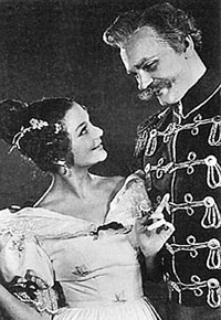 | Со второй женой Екатериной Райкиной в спектакле «Дамы и гусары», 1960 год |