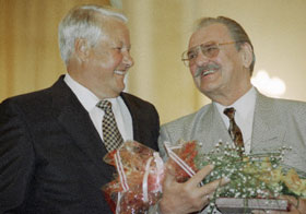 | С президентом России Борисом Ельциным на вручении Государственных премий в области литературы и искусства, 1995 год |
