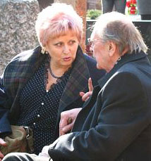 | После развода Юрий Васильевич и Екатерина Аркадьевна отношений практически не поддерживали, но при встрече общались. На похоронах Михаила Ульянова, март 2007 года |