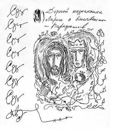 ![]() Уже после освобождения режиссера в одной из киевских газет были опубликованы параджановские «Письма из неволи незнакомке».Этот рисунок, сделанный Сергеем Иосифовичем в зоне, тоже посвящен незнакомке |