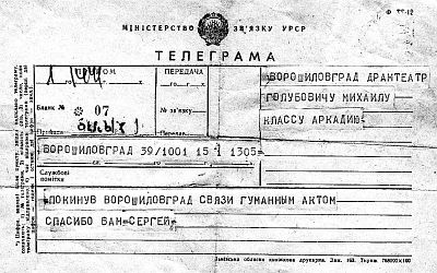 — Это случилось 21 ноября — в день моего рождения. Я взял с собой Володю Шокало — сейчас он в нашем театре работает, а тогда был в Театре киноактера при студии «Молдовафильм», в Ворошиловград приехал к теще своей.