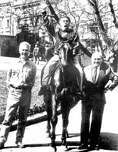![]() Трое, не считая лошадки... Легенды эпохи: Виктор Ильченко, Роман Карцев и Михаил Жванецкий. Одесса, 80-е годы |