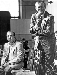 | Виталий Коротич и Евгений Евтушенко на вечере «Огонька» в Манеже, июнь 1987 года |