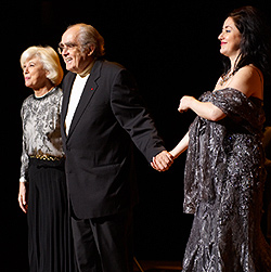 | Маэстро Легран с супругой Катрин Мишель и Тамарой Гвердцители Фото Сергея КРЫЛАТОВА |