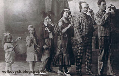 | Семейство Жеймо: Янина, ее сестра Елена, дядя Павел, мама Анна, дед Вацлав и отец Болеслав Юзеф, 1912 год |