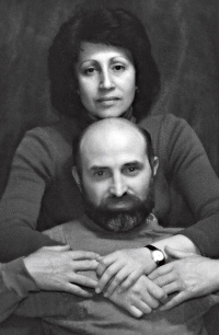 | Со вторым супругом художником Борисом Карафеловым. «Я могу таким количеством своих портретов похвастаться, какого даже у Иисуса Христа не было. Я вечная модель — у меня же и отец художник, и с четырех лет я позирую» |