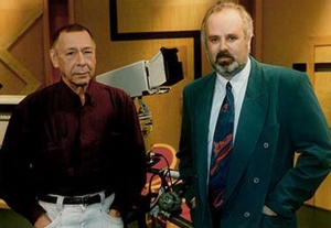 | С выдающимся театральным режиссером Романом Виктюком. «Собеседник должен быть симпатичен мне с самого начала разговора. Я буду «гонять его по буфету», задавать сложные вопросы, но он должен чувствовать себя комфортно. Я пригласил человека в гости, поэтому обязан вести себя достойно» |
