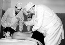 Много людей обращалось ко мне за помощью, а условий для работы не было никаких. Когда я начал уже, что называется, доходить, Минздрав распорядился: "Ладно, дайте Касьяну хоть что-нибудь". И мне отдали... дезинфекционное отделение при санстанции. Больных принимал в комнате, где стояли камеры для дезинфекции белья. Министерство закрепило за мной медсестру, чтобы она регистрировала посетителей, и положило ей зарплату. На этом свой долг оно сочло исполненным - ни санитарка денег за свою работу не получала, ни я. Лечили бесплатно, а народу было полно...