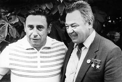 - Очень хорошо, очень! Мы там с женой и сыном в гостинице "Смольная" жили. Боже мой! В номере четыре комнаты, мать твою, пианино, большой холодильный шкаф. Открываю, а там икра красная, черная, балыки, выпивка, закуска. Представляете, я ни к чему не притронулся. Думал: "Елки-палки, это же дорого". Стеснялся даже бутылку коньячка с женой выпить, а кушать ходил в столовую вниз - там на рубль 20 можно было до отвала наесться.