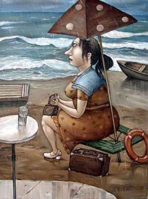 — По-разному. Вот я бродила у моря, накрапывал дождь, грустная дама сидела за столиком кафе и потягивала напиток через соломинку, взгляд ее остановился на горизонте — готовый сюжет к «Стакану дождя мутной воды». Иногда это фантазии. Картину придумала и кричу на весь дом: «Придумала!». Когда такое каждый день происходит, муж поучает: «Ты уже записывай, а то забудешь!». Любое мгновение жизни достойно быть запечатленным, а если добавить немного юмора, какую-то деталь, становится светлее и контрастнее, как в фотографии.