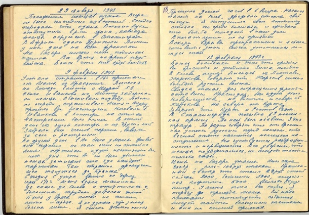 Положение немцев плохое. Вчера не было последних известий. Сегодня передали, что сданы Великие Луки, отступили в районе Дона, Кавказа. Немцы окружены в Сталинграде. В Африке сдали Триполи. Плохие у них дела на всех фронтах. На базаре ничего нет, поднялась паника. Все время на фронт идут войска. Боюсь, что Киев будут бомбить.