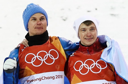 Уважаемые леди и джентльмены! Насмотрелся я тут на фото, где наш золотой медалист по фристайлу обнимается с коллегами-москалями.