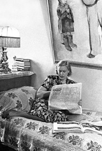 А на вопрос, как ей удается не толстеть, отвечала: «Я ем абсолютно все, но ношу корсетик. Например, съедаю несколько ложек салата, корсет не дает о себе знать, а после булочки давит, становится трудно дышать - значит, есть больше ничего не нужно».