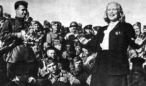 | Любовь Петровна выступает перед солдатами на фронте вo время Великой Отечественной, 1944 год |