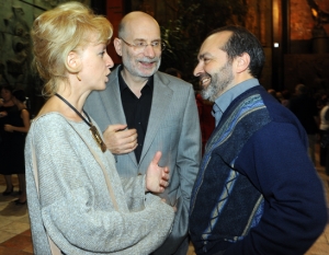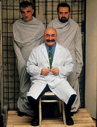 | С поэтом Игорем Иртеньевым и художником-карикатуристом, по специальности психиатром, Андреем Бильжо. «Это вам не гринвич недолеченный — это все родное-настоящее... Пей, товарищ, сколько хватит печени, — все равно, родимый, ляжем в кащенки!» |