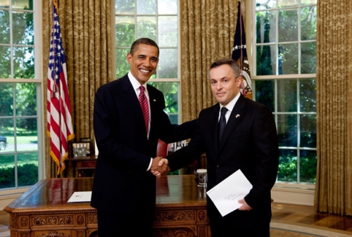 | Бату Кутелия с Бараком Обамой в Белом доме, США. «По опыту Грузии отмечу, что для быстрой трансформации всего сектора безопасности (как в политическом, так и в техническом плане) важно декларировать стратегию интеграции в НАТО» |