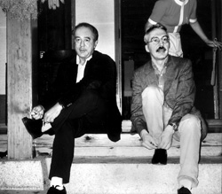 | «Многое в «шестидесятницком сообществе» держится на озорстве, которое пришло к нам не вовремя, как частичка неизрасходованного детства». С Андреем Битовым в Сеуле во время конгресса ПЕН-клуба. В Корее принято снимать обувь, заходя не только в храмы, но и в обычные помещения |
