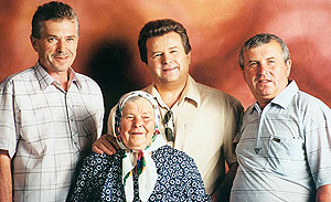 | С мамой Меланией Григорьевной и братьями Станиславом и Владимиром. «Я — старший из трех братьев Поплавских. Посижу с мамой, побеседую — будто камень с души падает. Село для меня — отдушина, в дальние страны, на экзотические острова не летаю, мне родины хватает» |