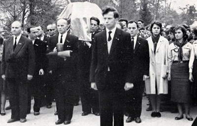 | 20 октября 1959 года в присутствии тысяч человек гроб с телом лидера ОУН опустили в могилу, засыпав привезенной с Украины землей и окропив водой из Черного моря |