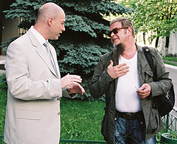 ![]() БГ: "Мне моя борода очень нравится, к тому же дает какую-то работу рукам. Могу поглаживать ее и выглядеть при этом интеллигентным человеком". С Дмитрием Гордоном Фото Александра ЛАЗАРЕНКО |