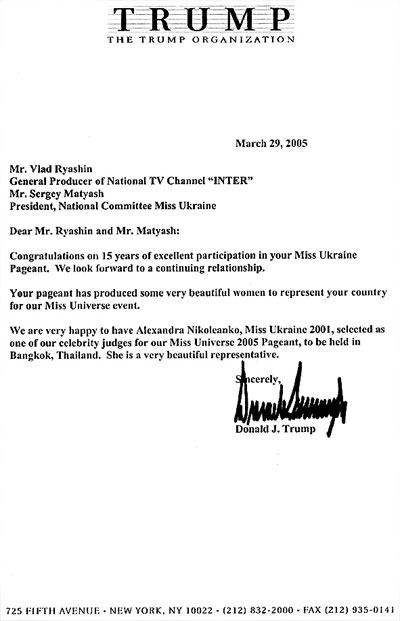 - Видит Бог, я конфликтов не хотела. Перед 15-м, юбилейным конкурсом "Мисс Украина" поехала к Дональду (миллиардеру Трампу, хозяину конкурса "Мисс Вселенная". - Т. Н.) и попросила: "Напишите им несколько слов поздравления". И Дональд это сделал, указав, кстати, что я буду членом жюри. Люди об этом забыли? Бог им судья.