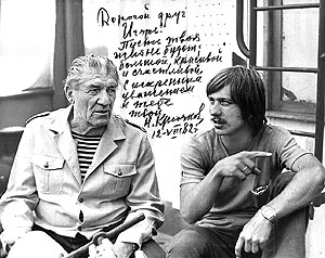 С третьей супругой случилась история поинтереснее. Снимал я в Светловодске фильм для местного радиозавода. Для одного эпизода мне нужна была не актриса - обычная девочка. Помню, завели меня в огромный сборочный цех и сказали: "Выбирай любую". Гляжу - за конвейером сидит тысяча симпатичных девчонок. Свою угадал сразу. Сняли, расплатились - тогда еще купоны были. Иная провинциалочка обрадовалась бы: дескать, в кино попала, подружки от зависти лопнут. А эта жутко обиделась - мало начислили, даже скандал закатила. Потом на протяжении двух лет мне чуть ли не ежедневно от нее письма приходили.