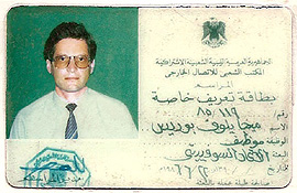 | Так арабской вязью было написано имя Бориса Михайлова на удостоверении главврача советских лечебно-профилактических учреждений в Ливии с 1985 по 1988 год |