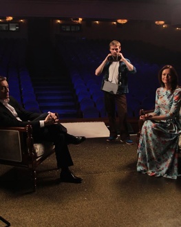 Актриса Ирина Безрукова начала цикл собственных программ "Разговор на сцене с Ириной Безруковой". Первым гостем стал ее супруг, российский актер и режиссер Сергей Безруков.