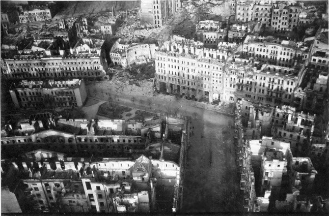 Выгоревший и разрушенный Крещатик, Киев, 1941 год