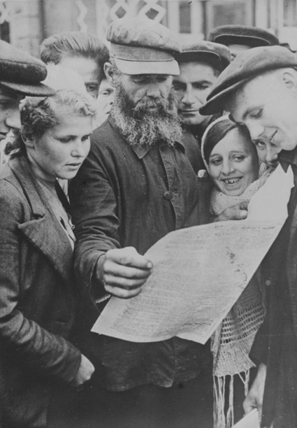 Жители оккупированного Киева читают газету, сентябрь 1941 года