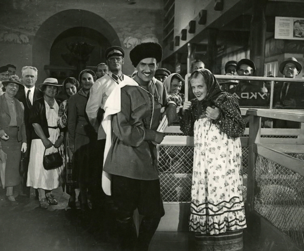 | Пастух Мусаиб (Владимир Зельдин) и свинарка Глаша (Марина Ладынина) в комедии Ивана Пырьева «Свинарка и пастух», 1941 год |