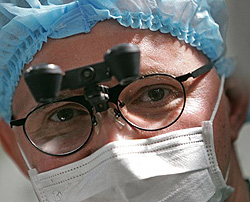 - Как крупная маслина. Поэтому необходимы очень маленькие инструменты, совсем тоненькие ниточки, а работать приходится в специальных окулярах с четырехкратным увеличением. Хотя это не проблема - мы же делаем аортокоронарное шунтирование, а сосуды там миллиметровые. Так что тренируемся каждый день - сегодня на трех операциях мне пришлось пришить девять шунтов...