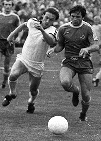 ![]() «Шахтер» — «Динамо» (Тбилиси), слева — Алексей Варнавский. «Лешка на поле был злым, объем делал колоссальный, хорошо играл головой,блестяще владел подкатом» |