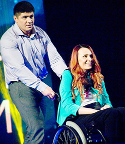 | Спортсмены Ирина Митина и Вячеслав Довгань победили в номинации «Семейная история». Вячеслав продал бизнес и заложил квартиру, чтобы помочь Ирине, которая после страшного ДТП осталась парализованной |