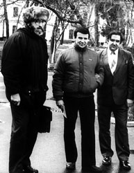![]() Николай Сядристый с Анатолием Кашпировским и прославленным чемпионом-тяжеловесом Юрием Власовым |