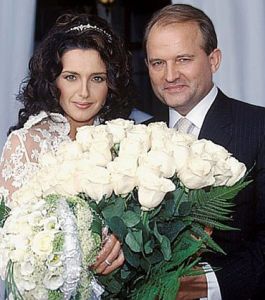 ![]() За романом Виктора Медведчука и Оксаны Марченко, которая младше Виктора Владимировича на 20 лет, наблюдал весь украинский политбомонд. В 2003 году пара поженилась: Оксана стала третьей женой Медведчука, а он — ее вторым мужем |