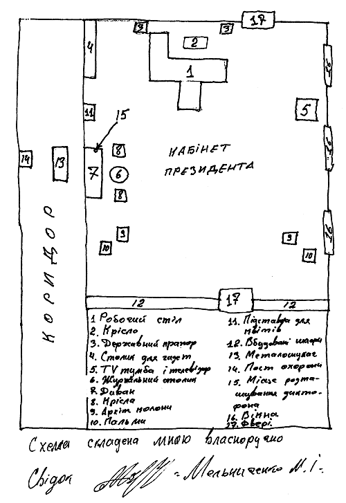 кабинета Президента Кучмы, указав стрелкой, где располагался диктофон