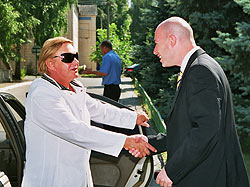 Тянет меня к Борису Николаевичу, а тот улыбается: "Вообще-то, предлагаю, чтобы мы с вами на телевидении встретились. - Он ко мне на вы обратился! - Я буду говорить как представитель культуры, а вы как политик. Вы Ельцин, а я - Роман". - "Хоть завтра", - отвечаю. Он к помощнику, не помню его фамилию: "Запишите", а я чувствую, как все на меня смотрят, - зависть неимоверная. Что это Ельцин ему говорит? Что диктует? Еще и руку ему на плечо положил!