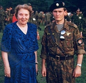 | Со Славой Стецько (Анной Музыкой) — политэмигранткой, диссиденткой, функционером ОУН (Организации украинских националистов), основательницей КУН (Конгресса украинских националистов), супругой Ярослава Стецько (первого заместителя руководителя ОУН Степаны Бандеры), 1995 год |