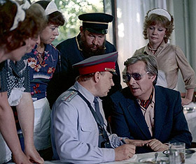 | Лейтенант милиции Николаша (Михаил Кононов), музыкант Платон (Олег Басилашвили), официантка Вера (Людмила Гурченко) в культовой комедии Эльдара Рязанова «Вокзал для двоих», 1982 год |