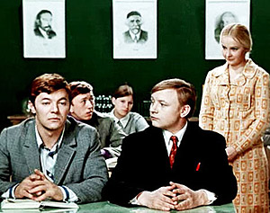 - Фильм «Большая перемена», которому в этом году исполнилось 40 лет, снят по моей автобиографической повести «Иду к людям». Так как прототипом главного героя является ваш покорный слуга (я после окончания пединститута год работал учителем в школе рабочей молодежи), бытует мнение, что режиссер выбирал актера, похожего на меня. Мы с Мишей просто одно лицо. Меня часто приглашают на творческие вечера, только чтобы убедиться в большом сходстве между нами.
