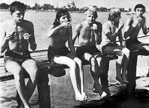 | Евгений Стеблов, Виктория Федорова, Михаил Кононов, Анна Родионова и Николай Досталь. «До свиданья, мальчики», 1964 год |