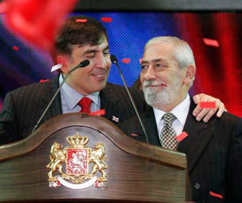 ![]() Вахтанг Кикабидзе и Михаил Саакашвили. "Он молодец, наш Михо. Я всегда очень реально смотрю на вещи и поэтому думаю, что он страну вытащит" |
