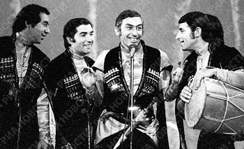 ![]() "Эта песня, дружище, твоя и моя...". Зураб Соткилава, Вахтанг Кикабидзе, Нани Брегвадзе и Иосиф Кобзон |