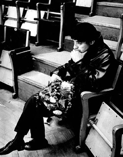 Нам удалось поймать редкий кадр: когда в воскресенье, отыграв три представления подряд, бледный и усталый Енгибаров пришел в гримерку, у него не было сил даже закурить. Ассистент поднес ему зажигалку, Леня потянулся к ней, и в кадре хорошо видно, что рука его дрожит.