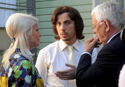 Отметился на фестивале и экс-супруг Пугачевой Филипп Киркоров, который приехал в Латвию вместе с отцом Бедросом. Как удалось узнать, Киркоров сейчас запускает вместе с Юдашкиным новую линию мужской бижутерии, после чего планирует ее выпускать в Америке. «Обратите внимание на пряжку! Это сегодня главное в моем костюме!» — хвастался Филя фотографам, демонстрируя брючную пряжку, на которой стразами были выложены инициалы: «FK».