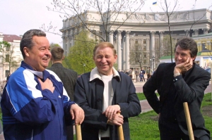 | Иван Плющ, Леонид Кучма и Виктор Ющенко на субботнике в Киеве, апрель 2001 года. «Он просто обожал природу, землю» |