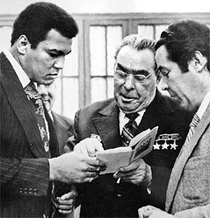 — То же самое он стал проделывать, если принимал кого-то в Кремле. Опять тот же сценарий: «Громыко? А, не курит... Александров? Не курит... Американцы, естественно, тоже... Витя, ну-ка закури». Ну а куда деваться? Пораженные американцы наблюдали за удивительной картиной: переводчик достает пачку сигарет, прикуривает, и беседа продолжается. Потом Брежнев опять всех прерывает: «Витя, ты все не так делаешь — дым выпускаешь куда-то в другую сторону, а надо в мою». Это был уже полный сюрреализм: сидит переводчик, нагло курит и пускает дым...