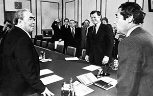 — А дальше — верно, рефлекс: они действительно обнялись, и Брежнев Картера чмокнул. Снова сели, потом Картер стал выступать — на русский язык его американский переводил переводчик, но звук был неважный: какое-то там эхо стояло и не совсем разборчиво звучал текст. Вот тут Леонид Ильич начал крутиться и оборачиваться к стоящим сзади — короче, как бы занервничал.